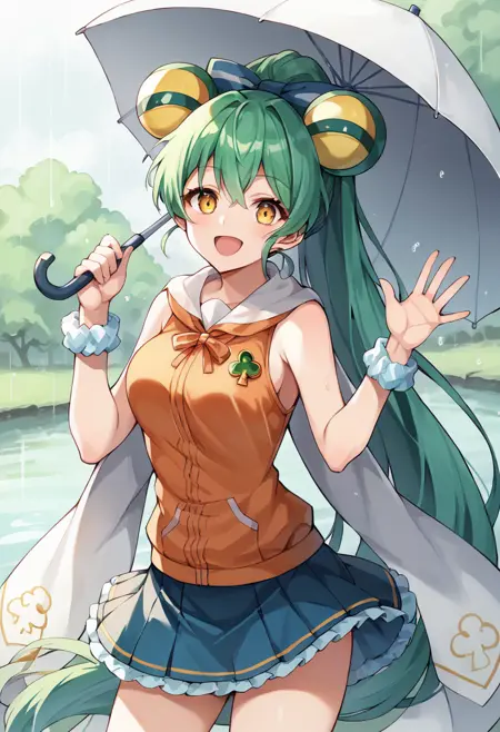 非常长的头发,绿色头发,黄色眼睛,马尾,发带,