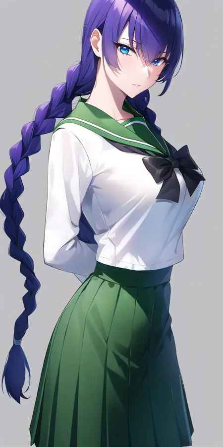 white_shirt_long_sleeves_green_sailor_collar_black_bowtie_green_plaid_skirt_serafuku:彼女の学校制服