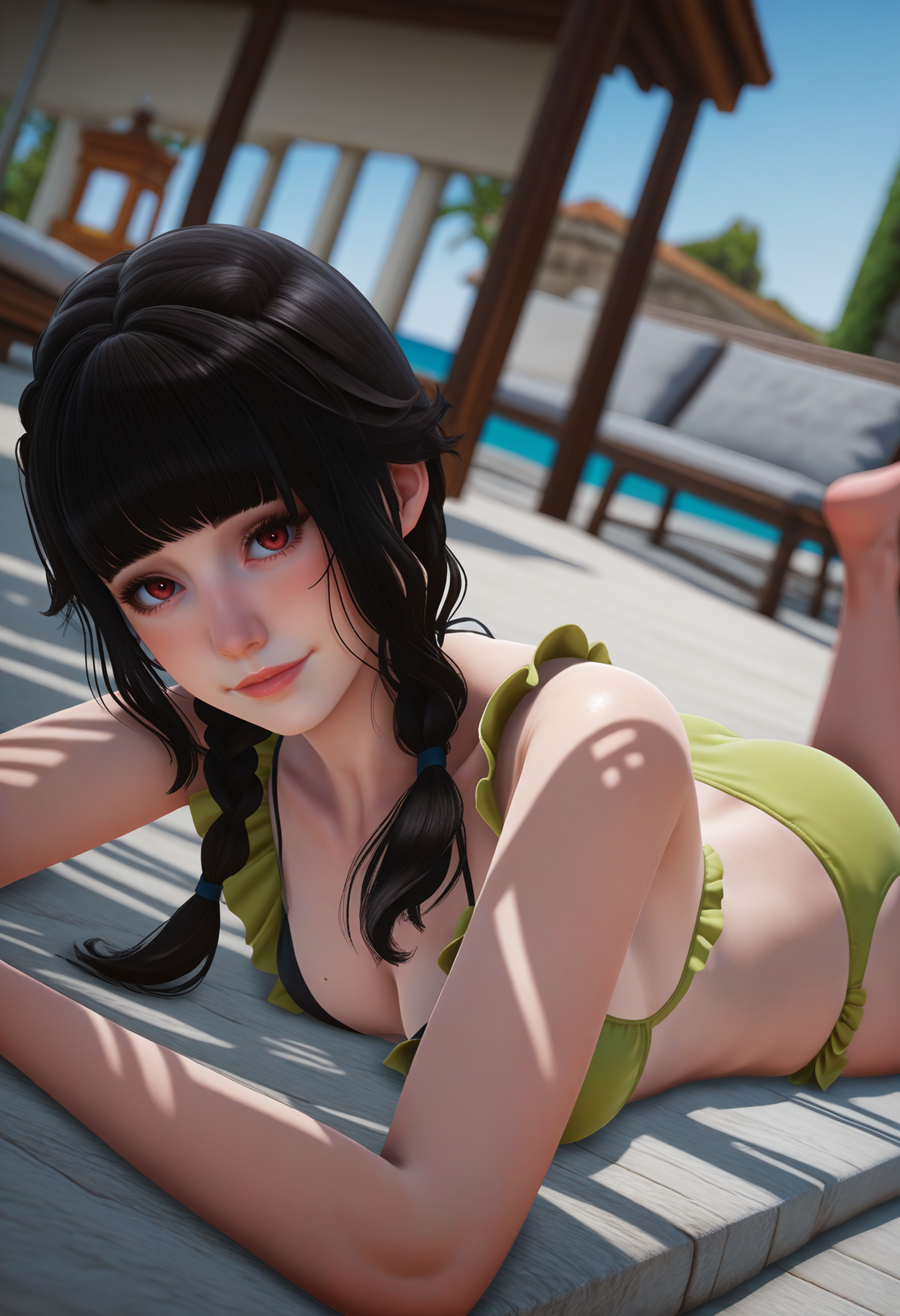 低双辫,比基尼,荷叶边,白色手套,
