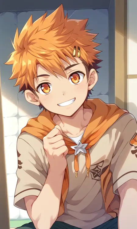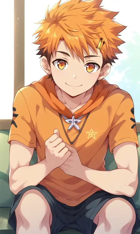 トリガー語: ヒロ・アキバ、オレンジ色の目、オレンジ色の髪、ツートーンヘア、短髪