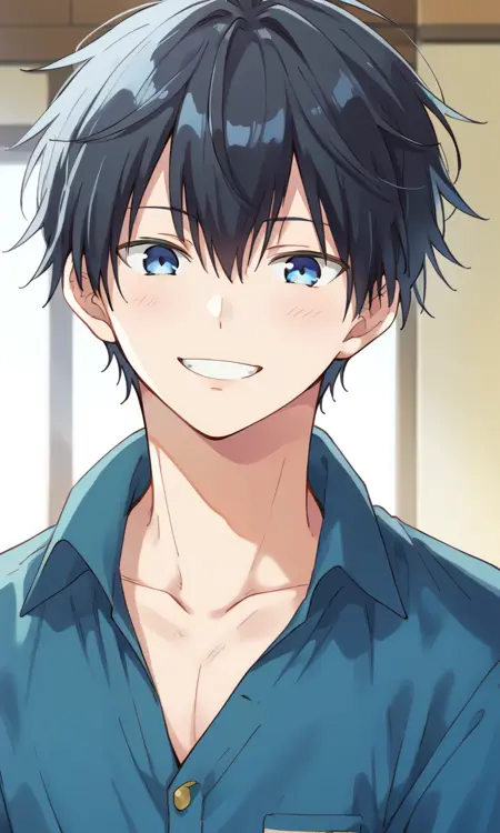 トリガー言語: ritsuka uenoyama, 黒髪, 青い目