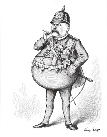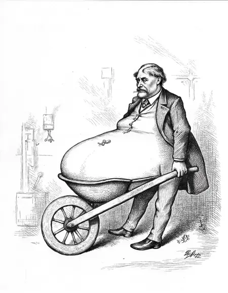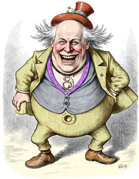 토마스 나스트 스타일로 그린 윗모자와 앞치마를 단 두 남자의 고전적인 정치 풍자화