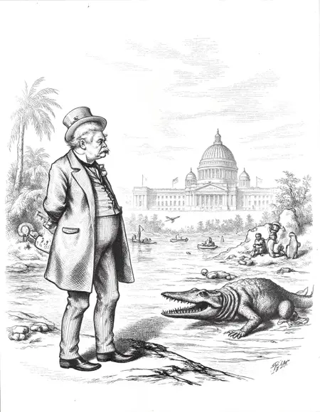 '당신의 프롬프트'를 토마스 나스트 스타일로 그린 고전적인 정치 풍자화