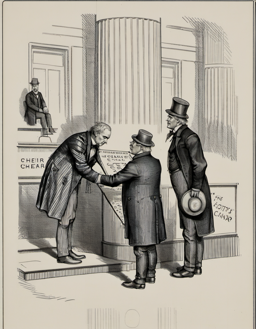 '당신의 프롬프트'를 토마스 나스트 스타일로 그린 고전적인 정치 풍자화