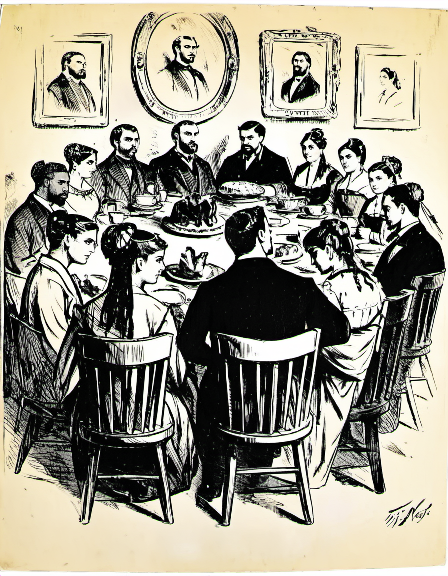 '당신의 프롬프트'를 토마스 나스트 스타일로 그린 그림