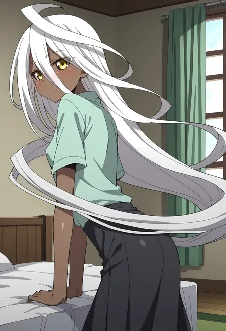 情報:彼女はアニメでは常に裸で登場するため、提示する衣装は存在しません。技術的には、彼女は髪を衣装として使用しています。髪で隠す、乳首をカバー、性器をカバー などのプロンプトを試してみてください。