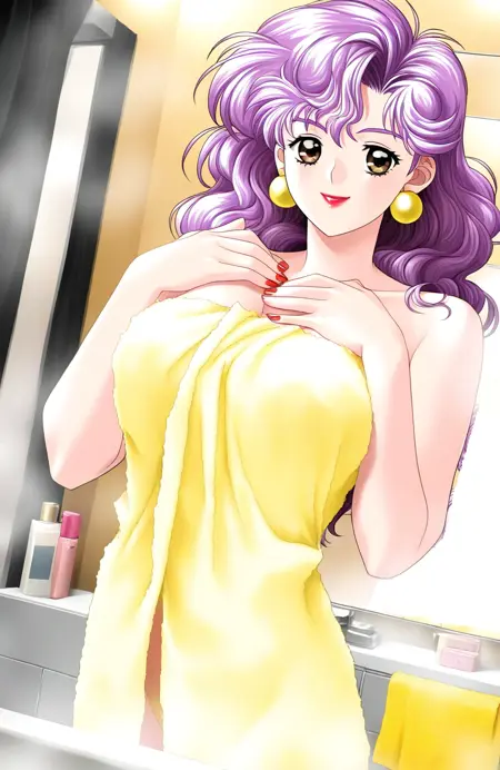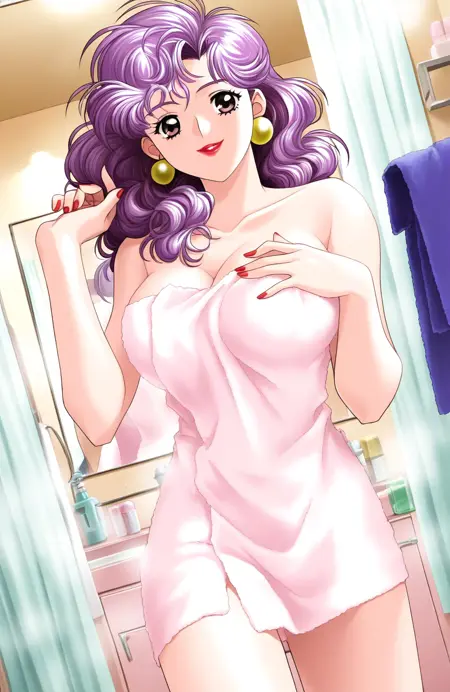 Naruse_Kaori(Doukyuusei) 1girl, solo, 紫髪, ジュエリー, ピアス, リップスティック, ネイルポリッシュ, 茶色の目, 赤い爪, 長髪, 大きな胸,
