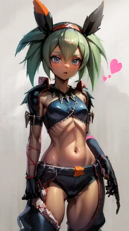キャラクター用LoRAとの併用でも概ね問題なく動作するが、外見に大きな影響を与えることは多くない。残念ながら、特徴的な腰部のメッシュカバーはやや不完全な結果になりやすく、おそらくトレーニングデータの一部が均質で詳細不足のため、良好な結果が得にくい原因と考えられる。