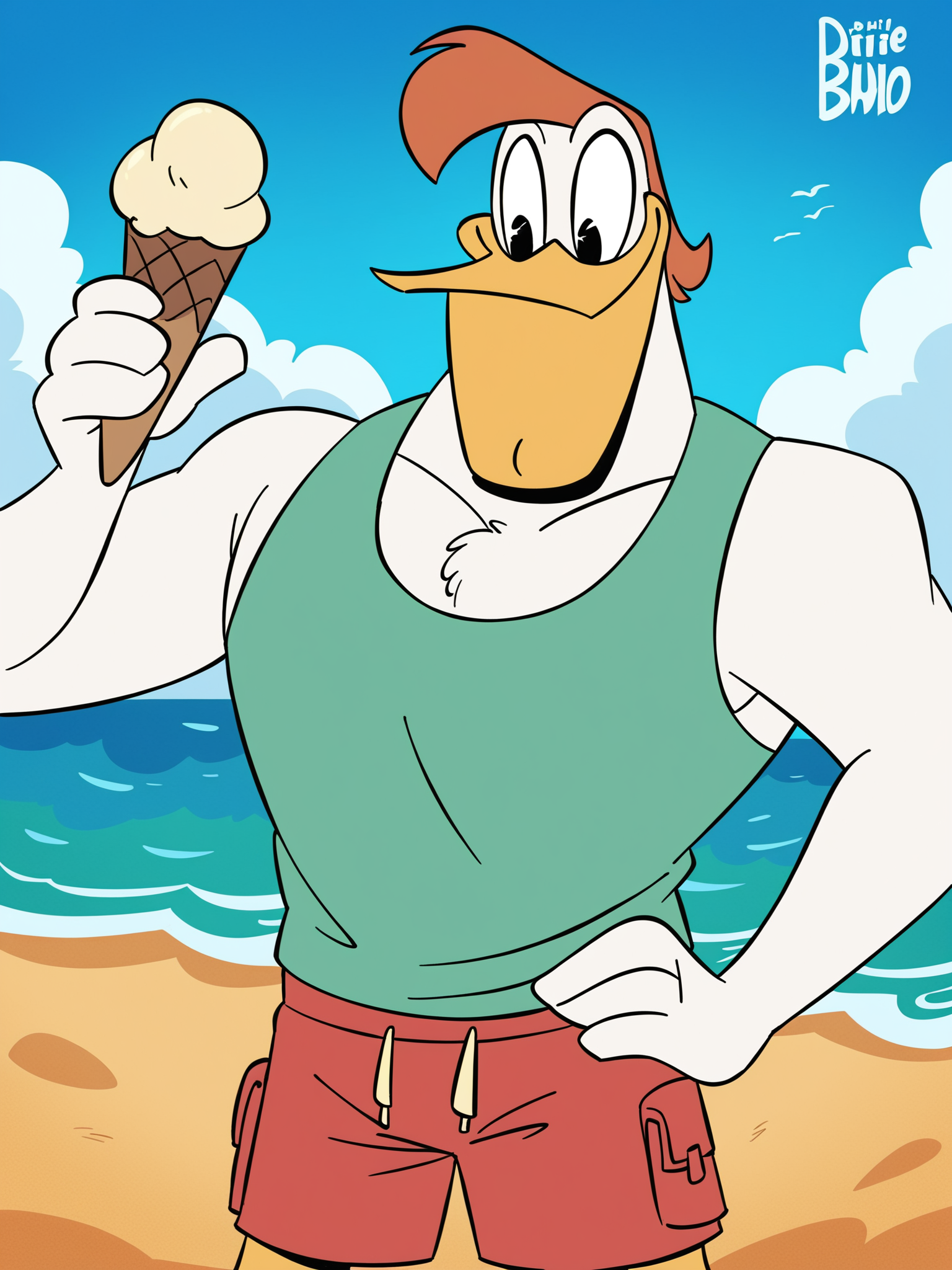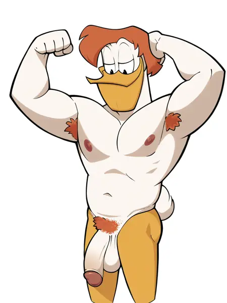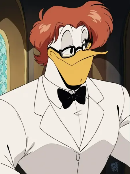 launchpad mcquack, white skin, red hair, short hair, black eyes, beak, duck