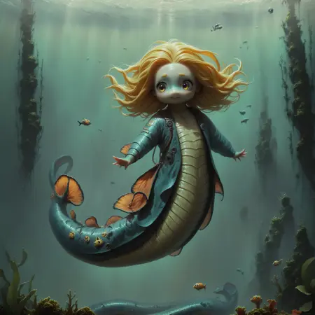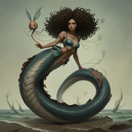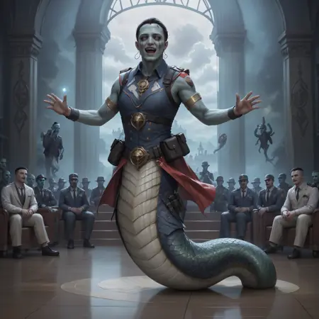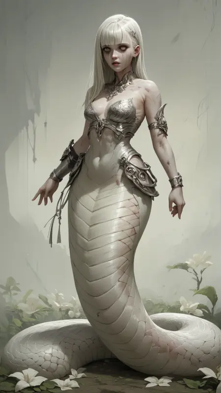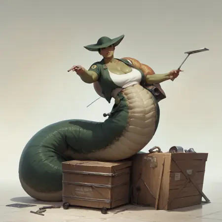 This is a model that helps to create naga creatures, both male, female and monsters. Skin, scales and hair colour can be changed. See example images for example prompts.