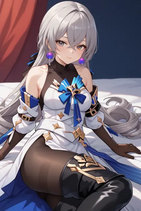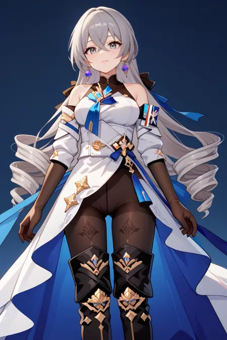 裸の肩, bronya zaychik, ジュエリー, ドレス, ピアス, 黒い手袋, 肘まで手袋, 白いドレス, 黒い靴下, パンティストッキング, ブーツ, 太ももまで長さの靴, シャツなし, 太ももブーツ, 茶色の手袋, 外れた袖, ボディスーツ, 黒いパンティストッキング