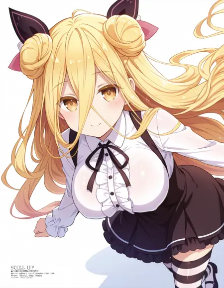 Mukuro, yellow eyes, large breast, blonde hair, double bun, absurdly long hair, hair between eyes
