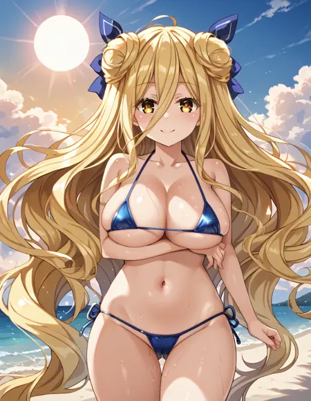 Mukuro, 黄色眼睛, 大胸, 金发, 双发髻, 极长编发, 单编发, 发丝垂于眼间