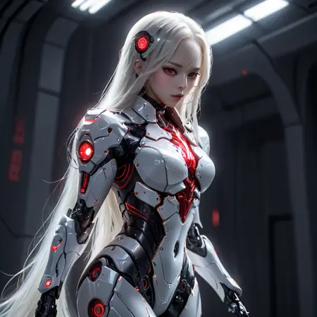 此 LoRA 旨在生成未来感十足、光滑闪亮的白色与红色光效。