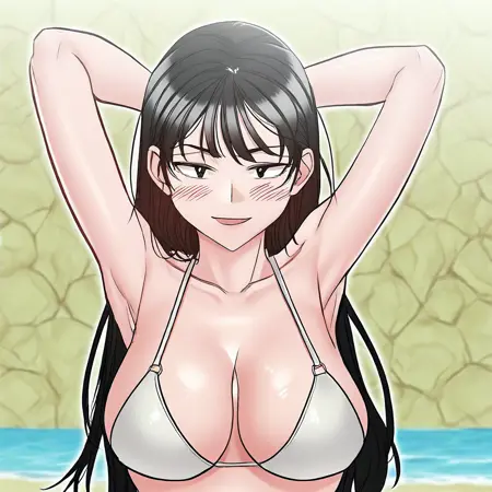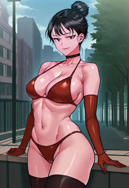 3. ((性感黑色比基尼上衣,露骨的胸脯,巨大的胸脯,性感黑色比基尼下装,))