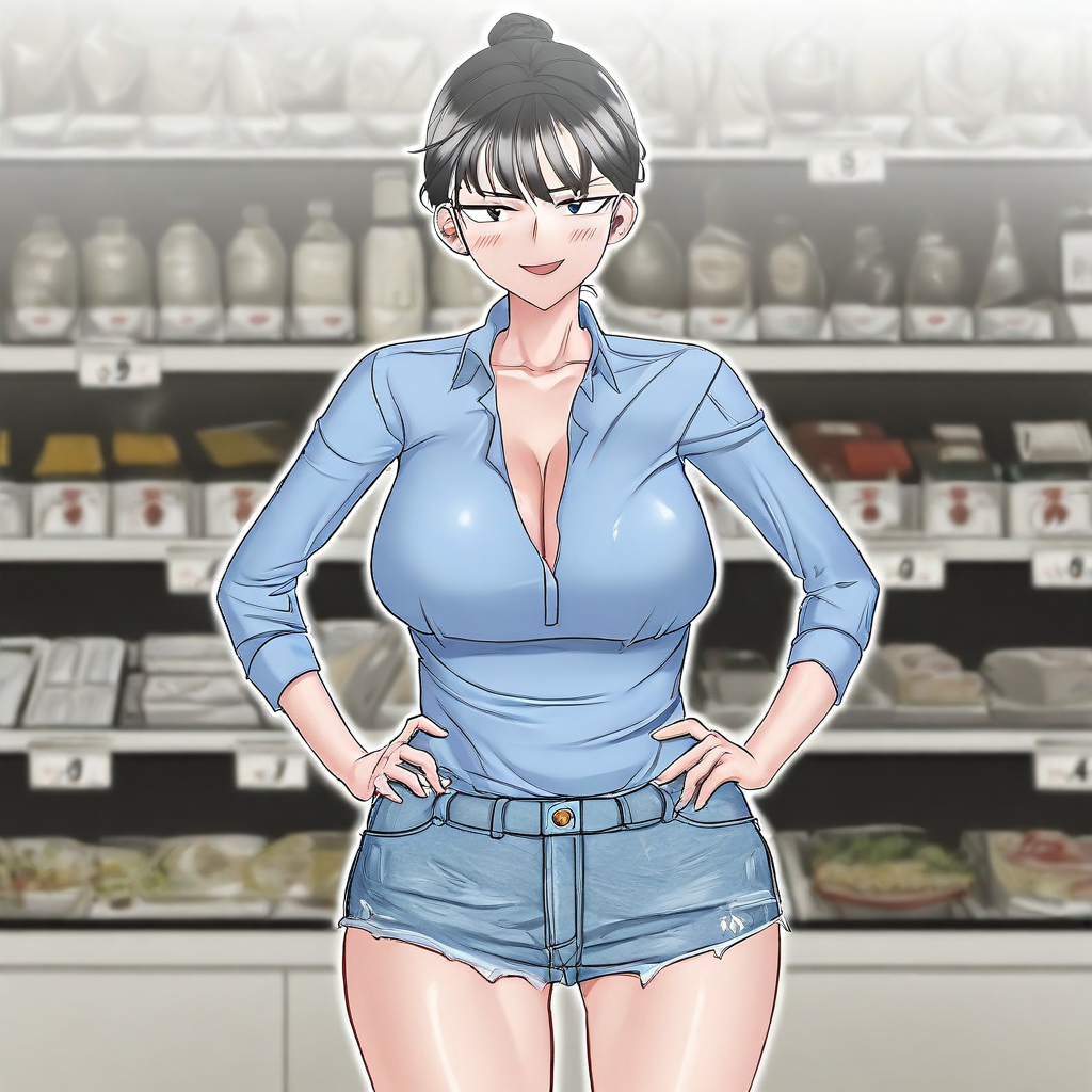 5. ((敞开的蓝色连帽衫,白色上衣,露骨的胸脯,巨大的胸脯,))