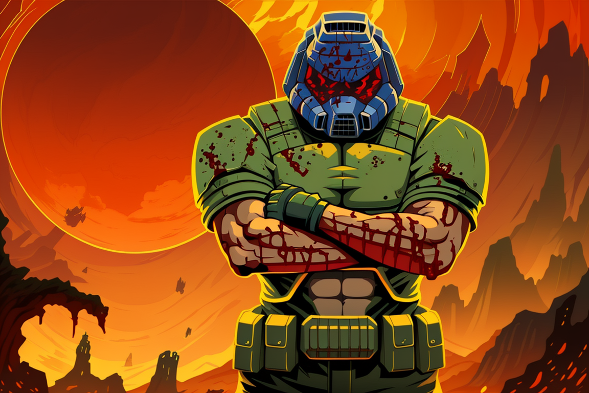 大多数基础模型对毁灭战士的外观有一定大致概念,但会将所有版本和变体混为一谈。此LoRA模型是基于30张来自1993年《毁灭战士》游戏的经典毁灭战士的粉丝艺术作品进行训练的。