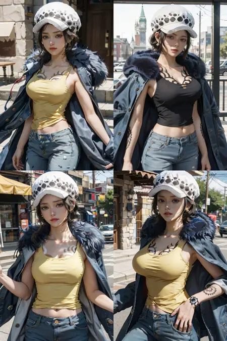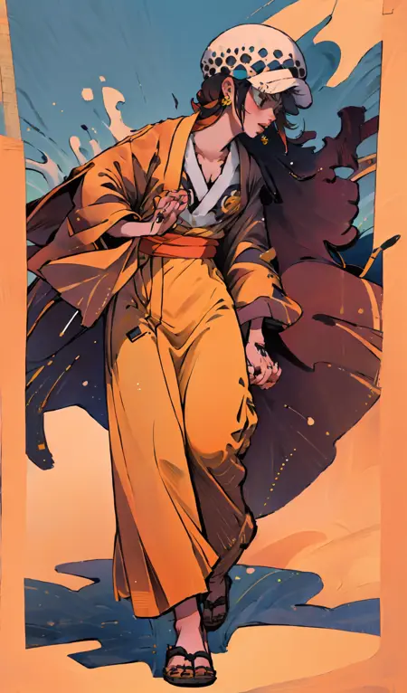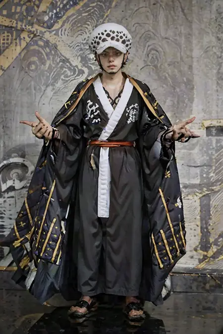 男性罗使用的提示词:1boy,law,earrings,hat,chest tattoo,hand tattoo,forearm tattoo,shoulder tattoo,