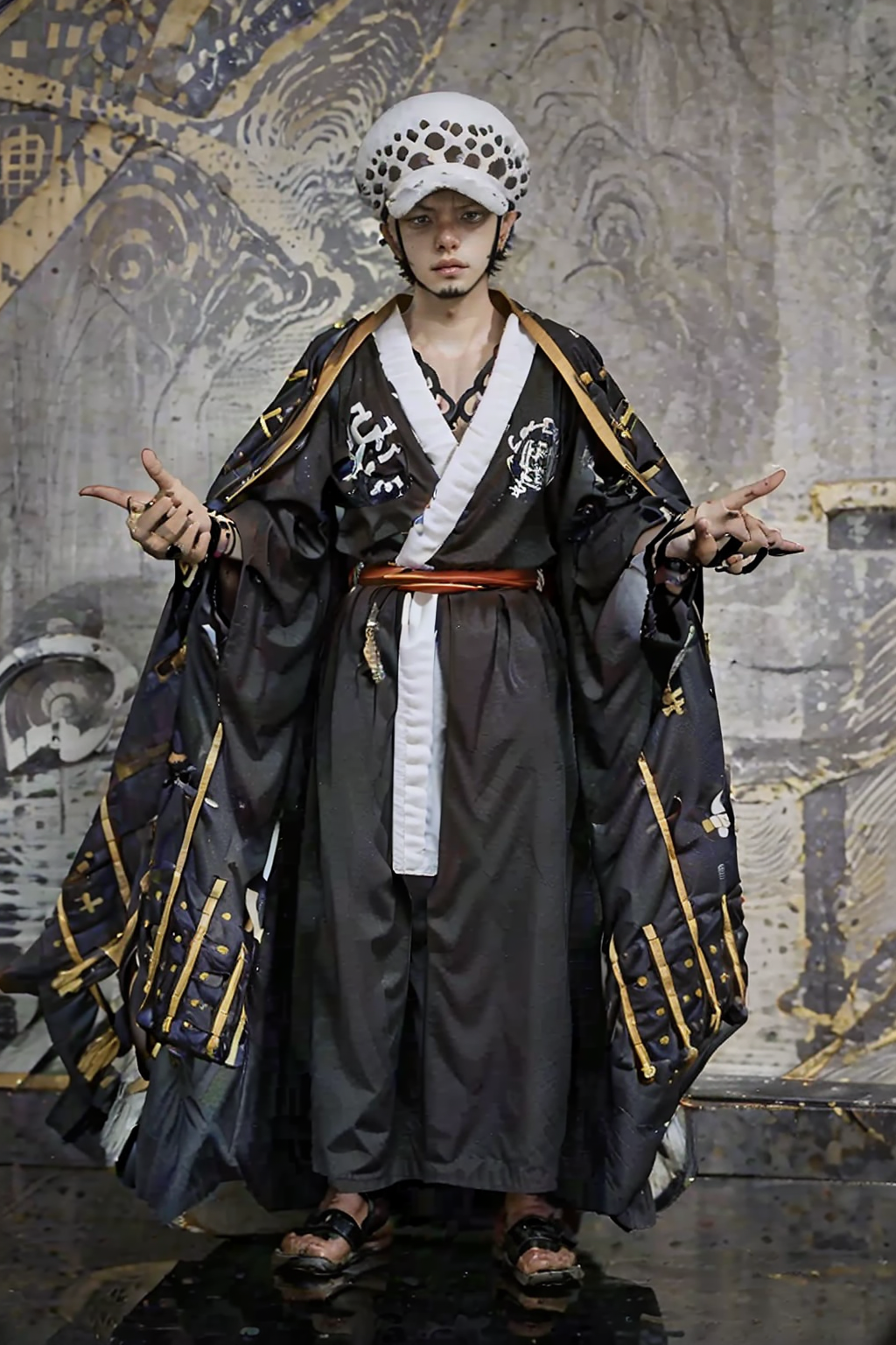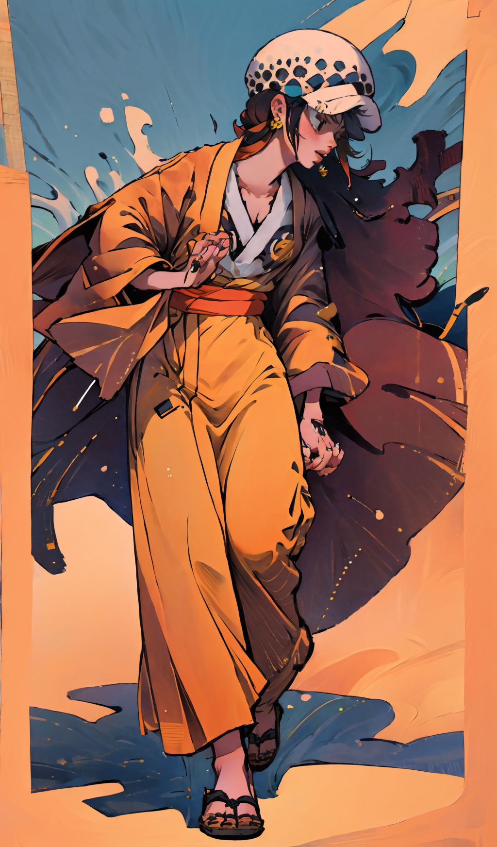 男性利用:1boy, law, earrings, hat, chest tattoo, hand tattoo, forearm tattoo, shoulder tattoo,