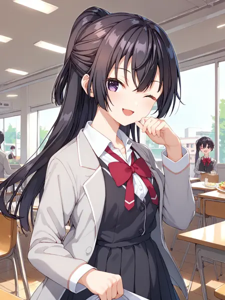 suouyuki_imoto, purple eyes, black hair, long hair, ponytail,瑪利亞·米哈伊羅夫納·九条(マリヤ・ミハイロヴナ・九条( - くじょう),Мария Михайловна Куджо)