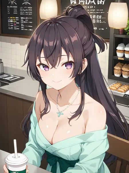 suouyuki_imoto, purple eyes, black hair, long hair, ponytail,マリヤ・ミハイロヴナ・九条(マリヤ・ミハイロヴナ・九条( - くじょう),Мария Михайловна Куджо)