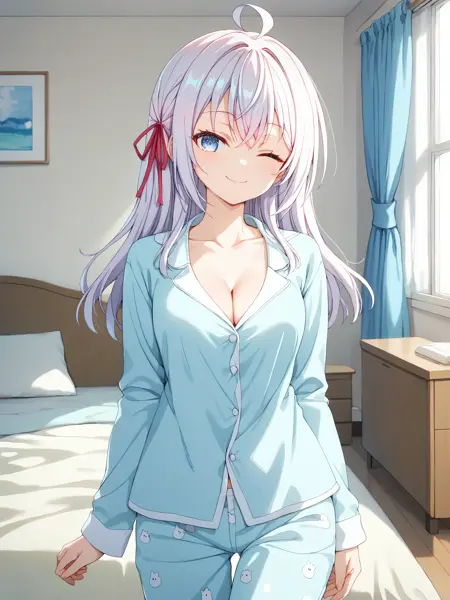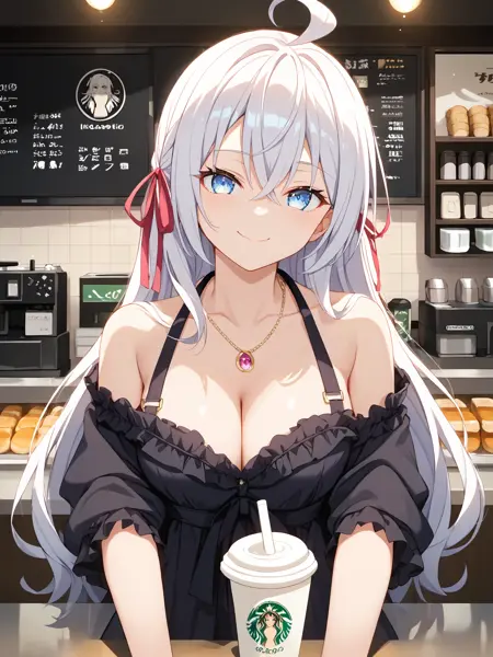 alya_imoto, blue eyes, white hair, long hair, hair ribbon, red ribbon, ahoge,周防 有希(すおう ゆき)