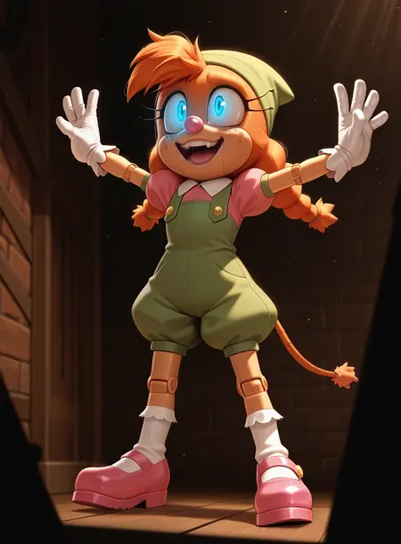 belle the tinkerer, long tail, thin tail, doll joints, orange tail