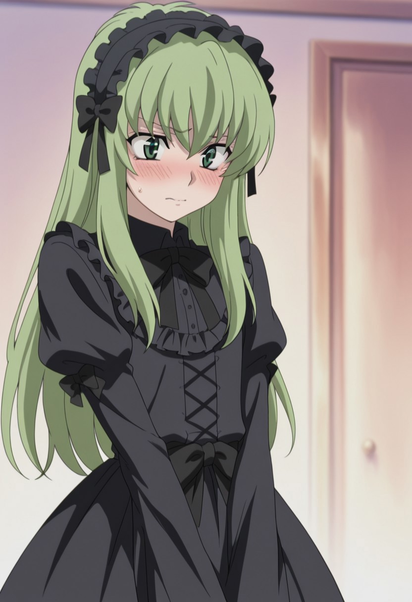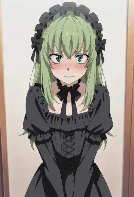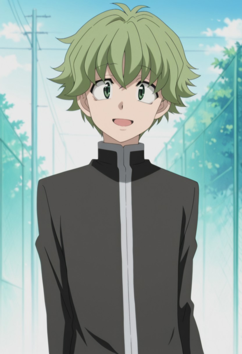 1boy, male focus, solo, green eyes, green hair, short hair, school uniform, gakuran, black jacket, black pants, black footwear