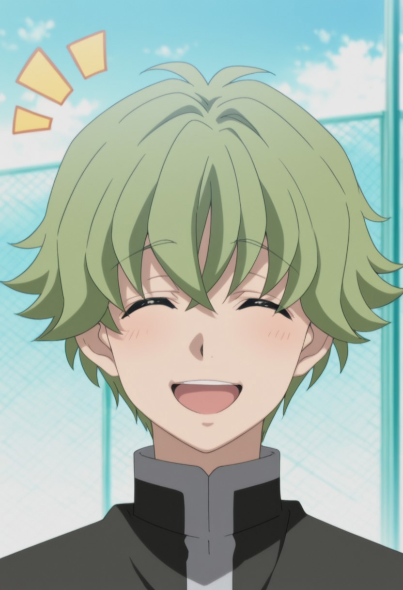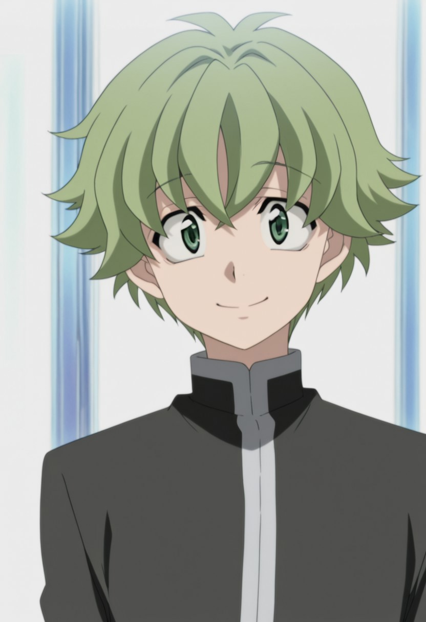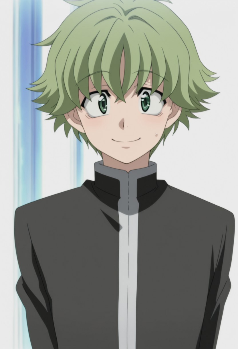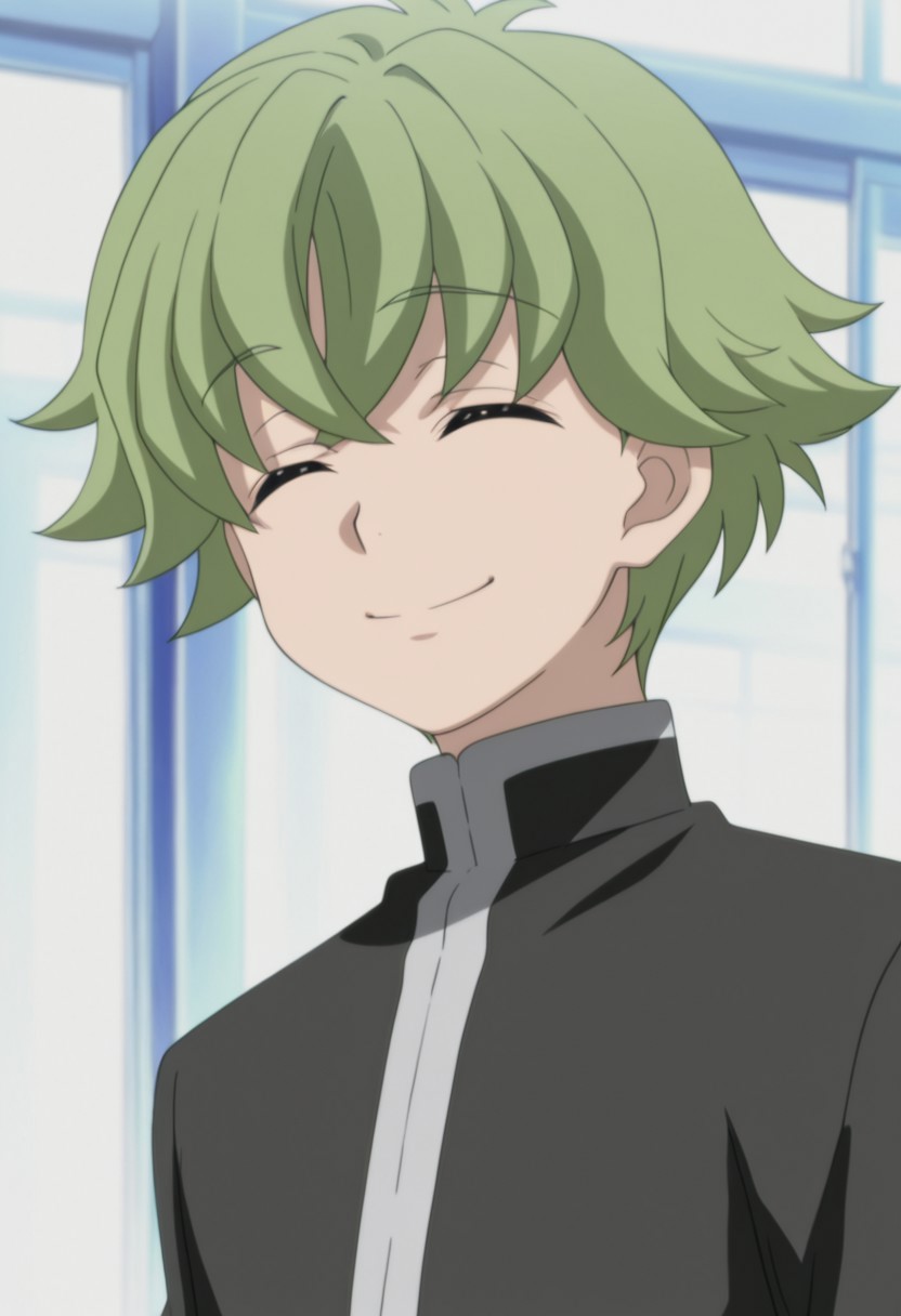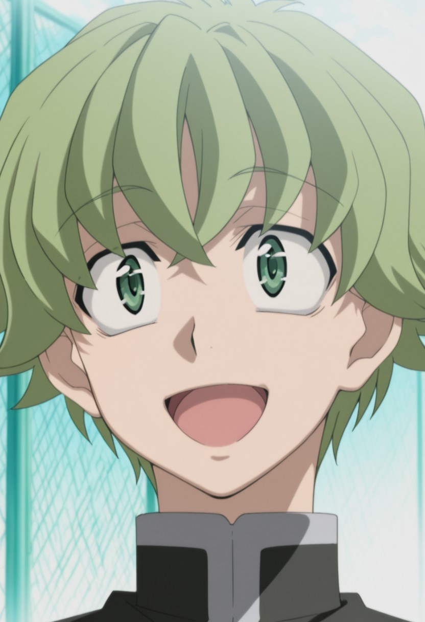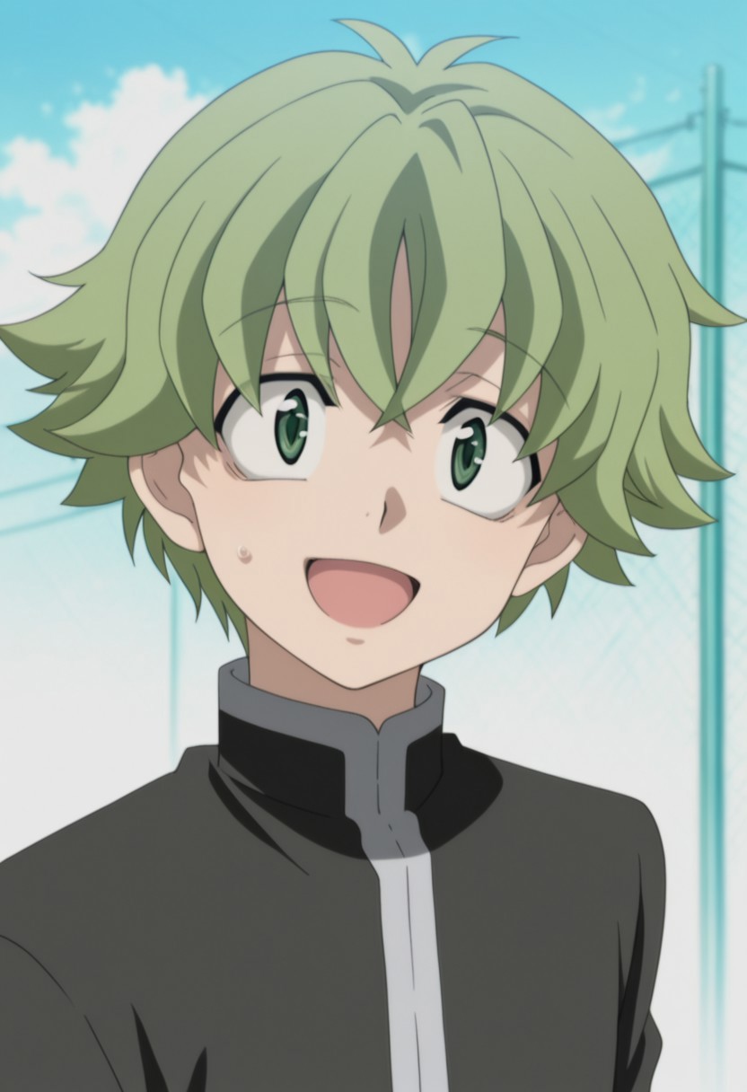 sakamoto, 1boy, male focus, green eyes, green hair, school uniform, gakuran, bangs, hair between eyes, short hair,