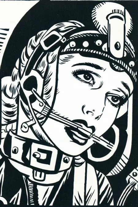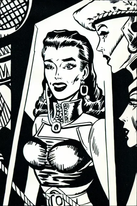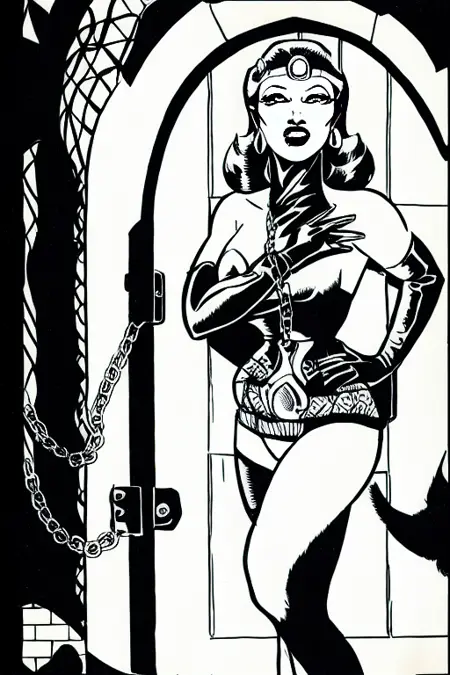 该模型基于1940年代至1960年代初期的复古色情素材训练而成,具有反映当时漫画插画风格的黑白墨水画风。