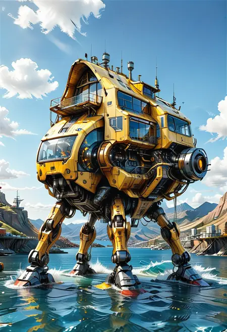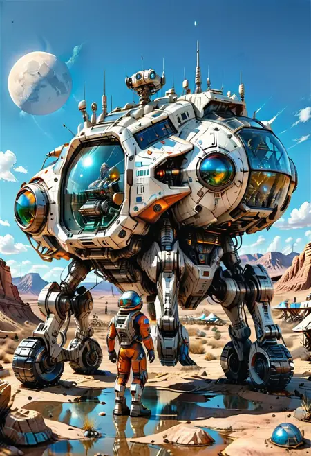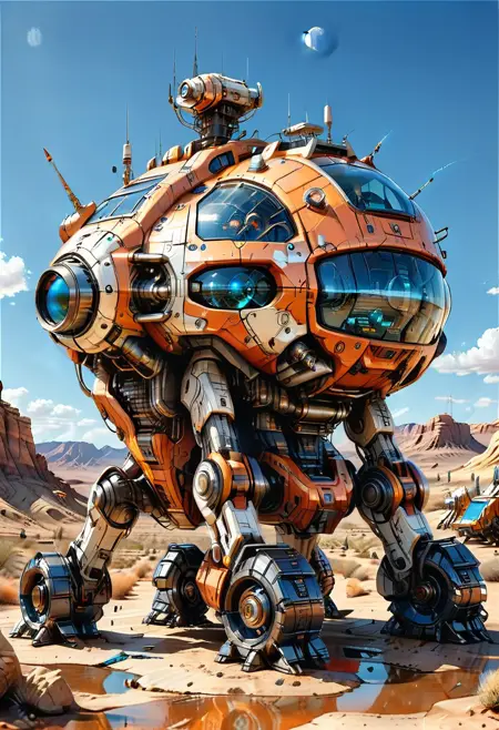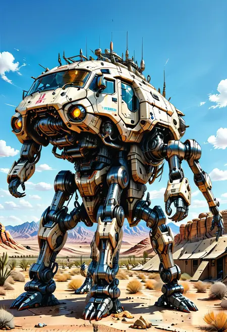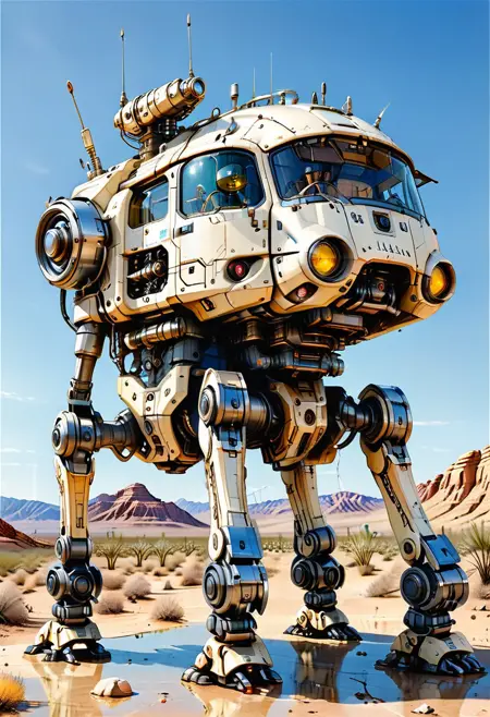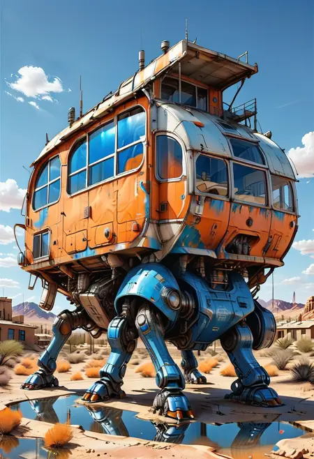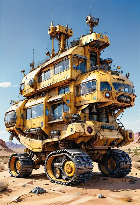 LoRAをこのコマンドで呼び出してください: <lora:Apparatus_-Traction_City_Walkers_Vehicles:0.8>