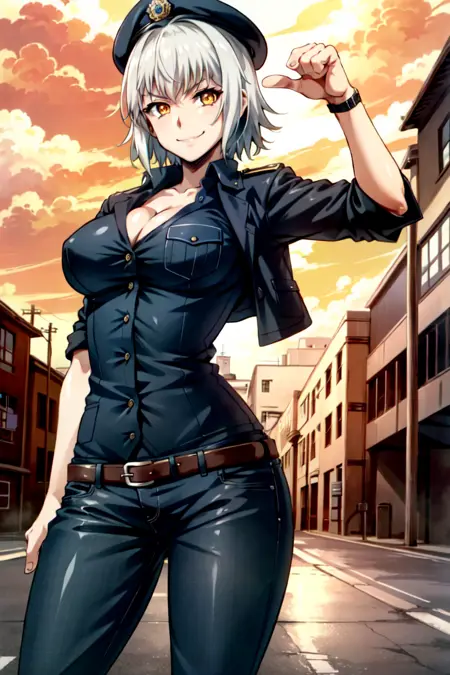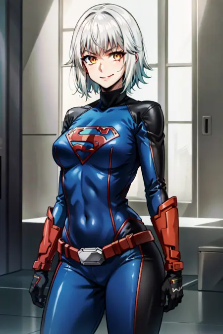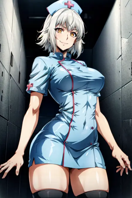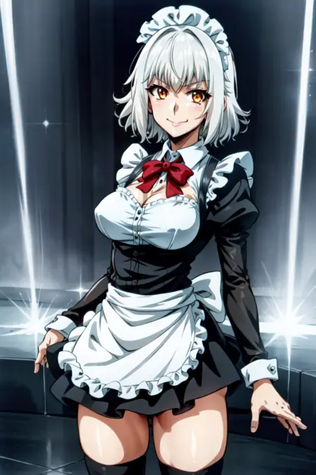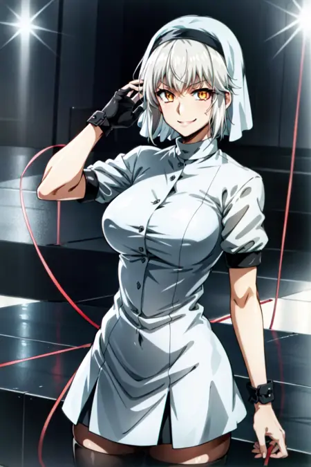 HitomiUzaki, 주황색 눈, 흰 머리, 짧은 머리, 큰 가슴