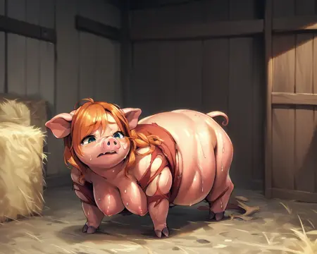 보조 단어: 1girl, solo, transformation, anthro, feral, sweaty, fat, chubby