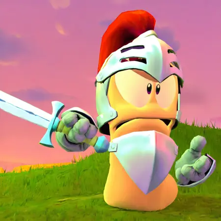 私は『Worms 4: Mayhem』、『Worms: Ultimate Mayhem』(WUMはW4Mのリマスター版で若干の調整と『Worms 3D』のキャンペーンとDLCを含む)におけるワームの外観が気に入っています。また、W4Mではカメラを自由に操作し、ゲーム速度を変更できるため、ほとんどの画像はそこから取得しています。残念ながら、ゲーム内にテキスト要素を削除する機能はなく、私は手動でキャプションを付けています。これはネガティブプロンプトに役立つかもしれません。