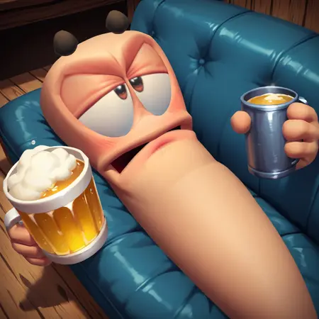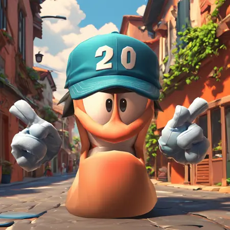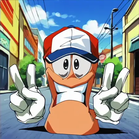 저는 _Worms 4: Mayhem_과 Worms: Ultimate Mayhem(WUM은 W4M의 일부 수정을 가한 리마스터이며, Worms 3D 캠페인과 DLC 포함)에서 웜스가 보이는 모습을 좋아하며, W4M에서는 카메라를 자유롭게 조절하고 게임 속도를 변경할 수 있습니다(따라서 대부분의 이미지가 여기서 촬영되었습니다). 불행히도 게임 내에서는 텍스트 요소를 제거하는 기능이 없어, 저는 수동으로 캡션을 달았습니다. 이는 부정적 프롬프트에 도움이 될 수 있습니다.