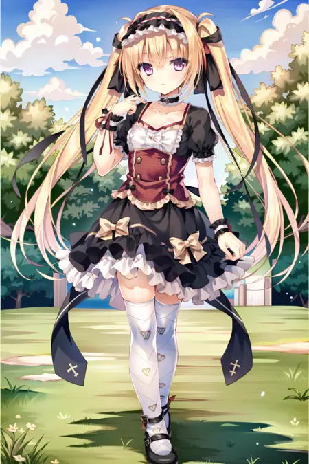 服饰1:lora:祢亚:0.75((masterpiece:1.4, best quality)) ,1girl,solo,(meiya\(gothic lolita\)):1.3,long sleeves,black thighhighs,