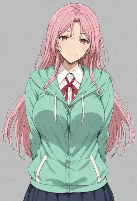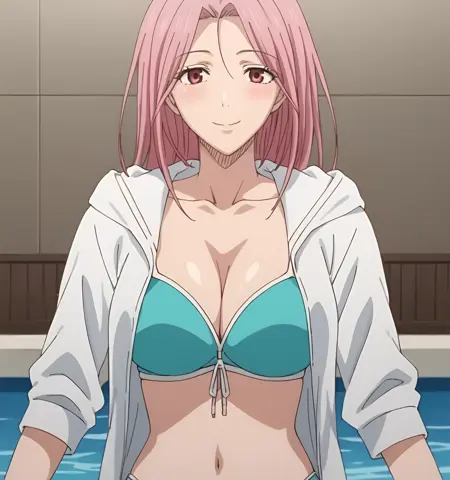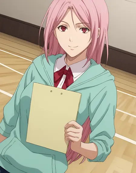 Momoi, pink hair, long hair, pink eyes, large breast