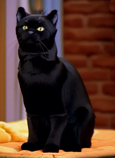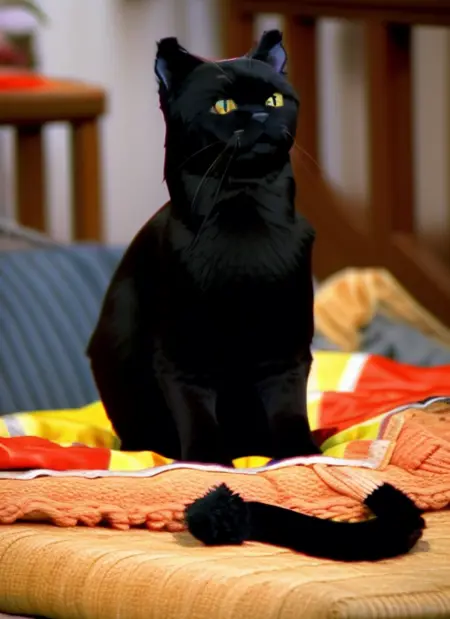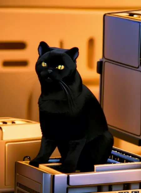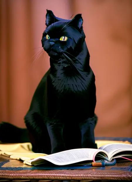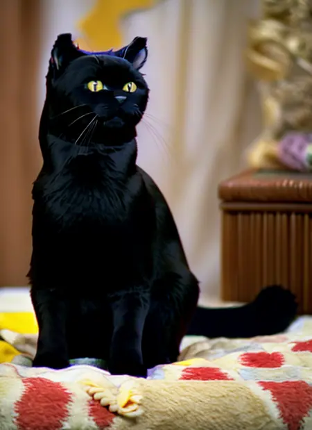 a photo of lora:salemlorav100sd15:1 s0alem, saberhagen, black cat, yellow eyes, cat sitting