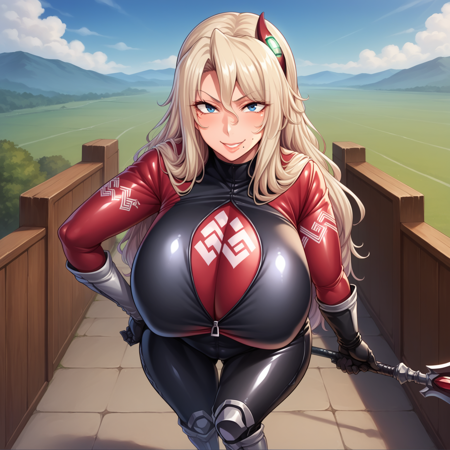 伊莉莎·珀尔曼, 1girl, 成熟女性, 金发, 长发, 蓝眼, 巨乳