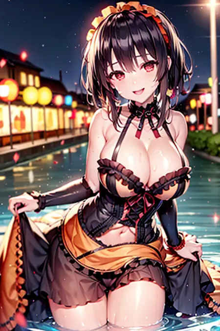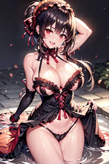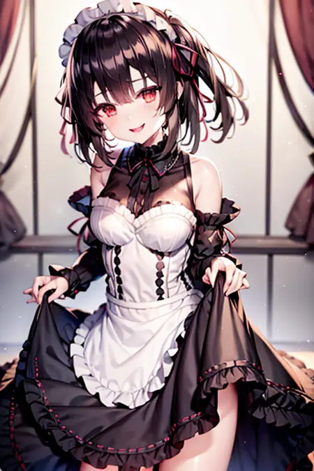彼女のロリータファッションを表現したい場合は、次を追加してください: cleavage, lolita fashion, lolita hairband, cross-laced clothes