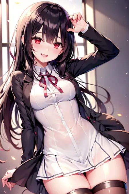 衣装や小物を出したい場合は、以下を追加してください: cleavage, lolita fashion, lolita hairband, cross-laced clothes