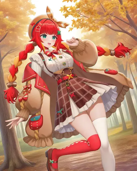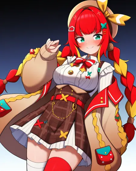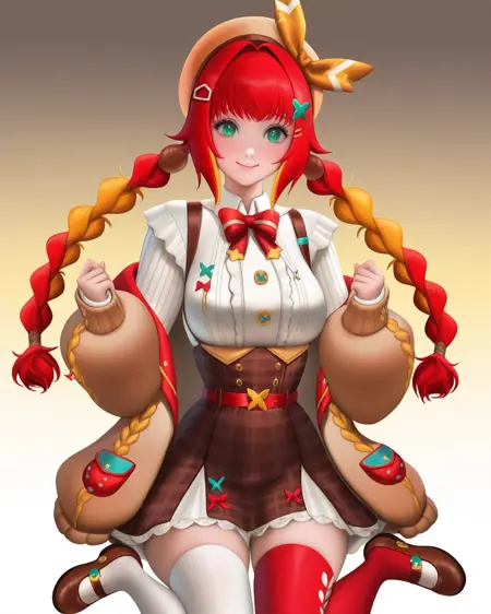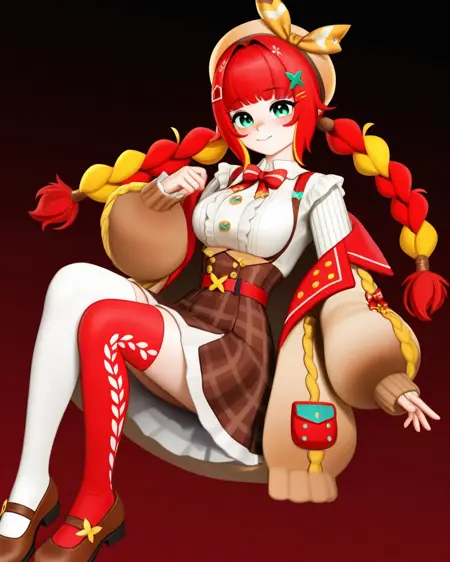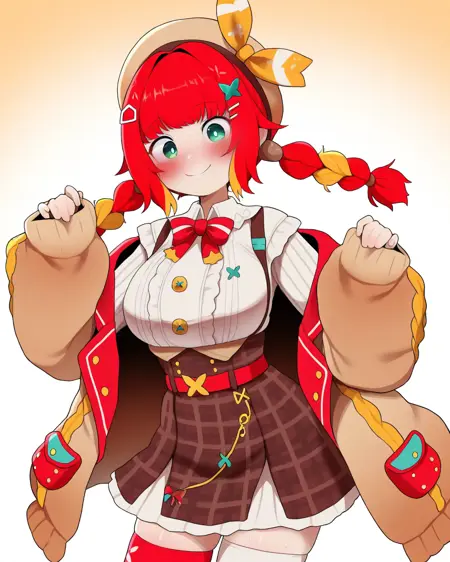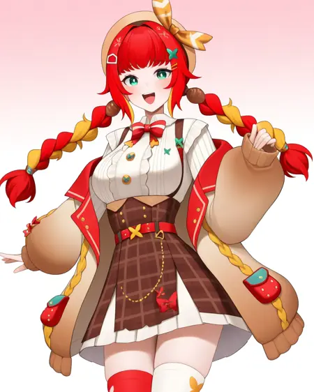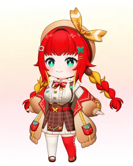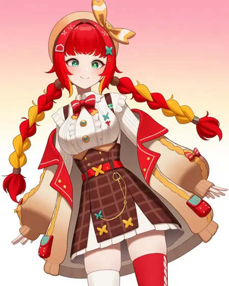 彼女を召喚するには**fumihausuを使用し、緑の瞳, 髪リボン, 赤い髪, ブロンドの髪, マルチカラーの髪, 短い髪, ヘアバンド, 髪飾りで頭部を形成し、ロングスリーブなし, スカート, ショートスカート, リボン**で彼女の定番衣装を召喚してください。推奨LoRA重み:0.6
