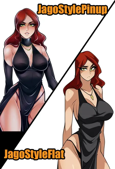Sub Style Triggers: JagoStylePinup (soft shading, detailed) / JagoStyleFlat (cel-shaded, lower detail)