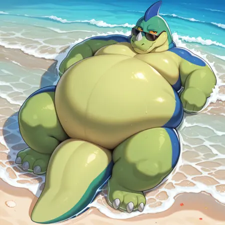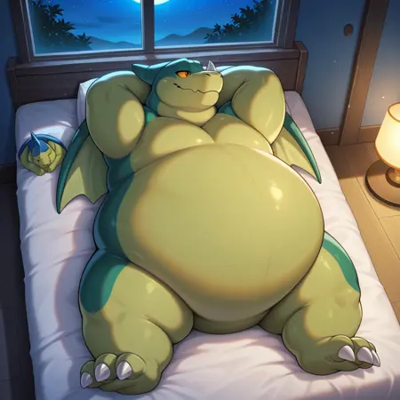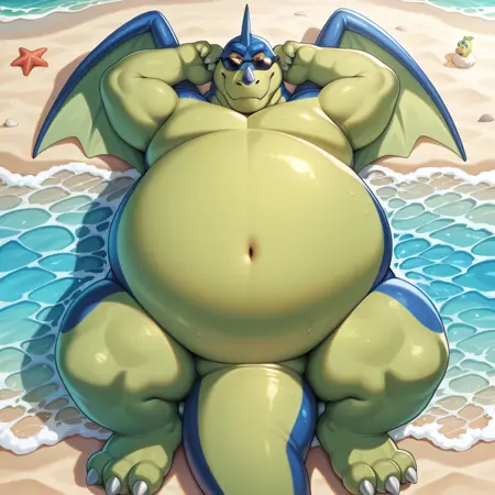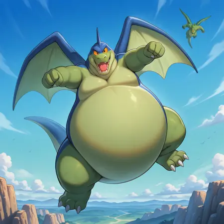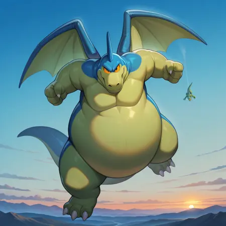 最良のポジティブ入力: (giran, dragon, fat, obese, horn, orange eyes, green and blue body,)