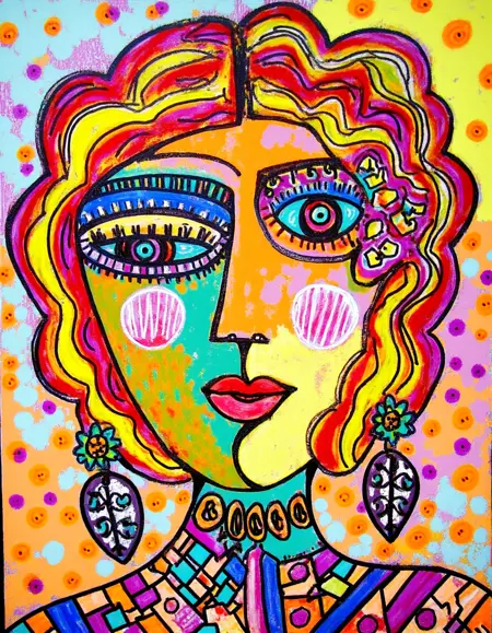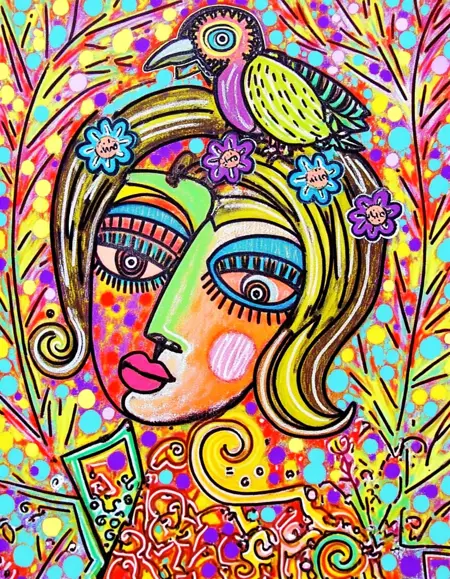 • 色鮮やかな顔をした女性をサンドラ・シルバツヴァイクのスタイルで描いた絵