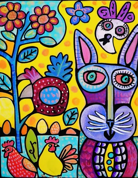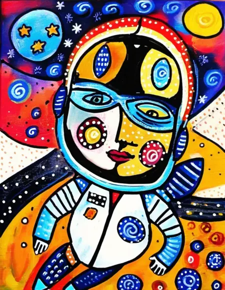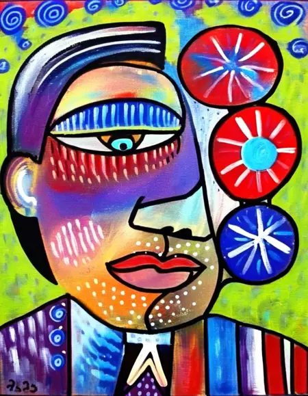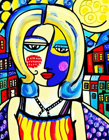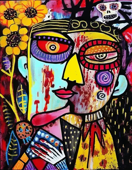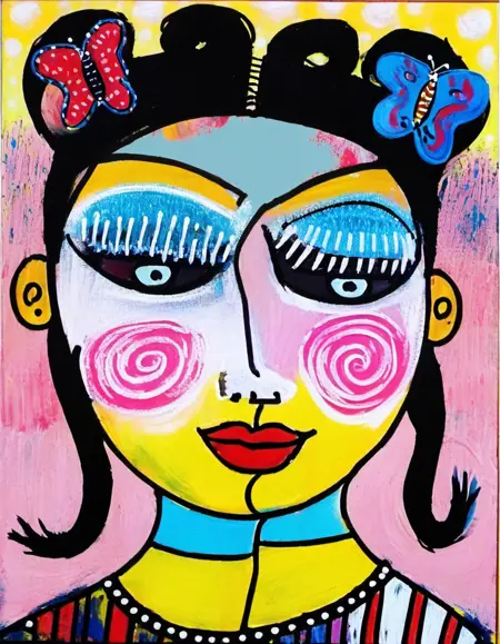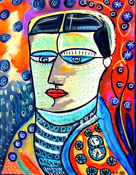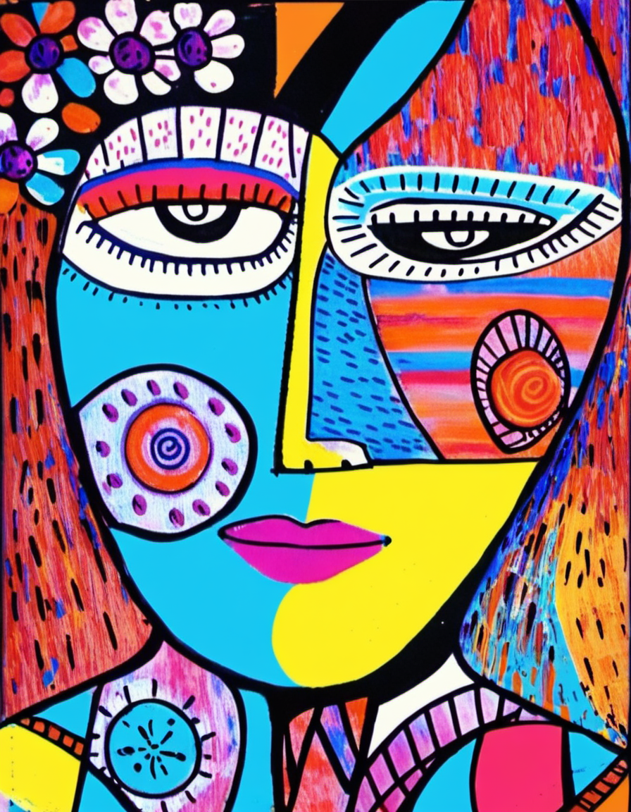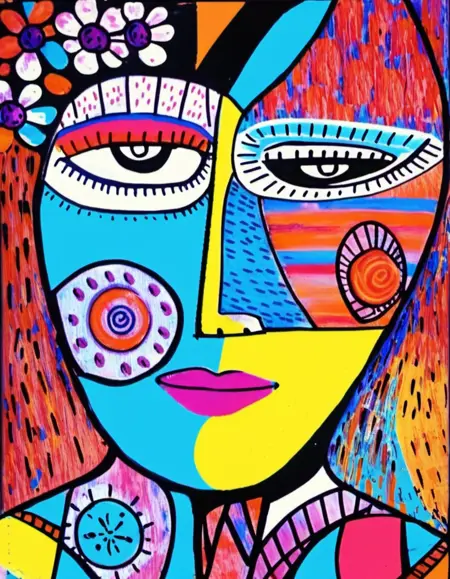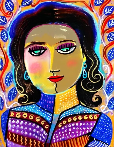 色鮮やかな顔をした女性をサンドラ・シルバツヴァイクのスタイルで描いた絵