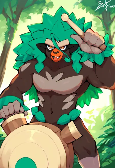 --v1 XL-- 在 PonyXL v6 上训练,在 AutismMix Pony 上测试。 嗯,猴子。鼓有时会有点不稳定,但有时也能奏效。 推荐的正面提示:rillaboom,橙色眼睛,鼓棒(音乐)*,rilldrum* *可选,分别用于鼓棒和鼓。