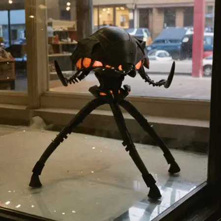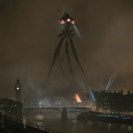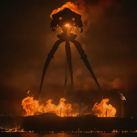 『宇宙戦争』から来た三脚型機械。『宇宙戦争』はイギリスの作家H.G.ウェルズによるサイエンスフィクション小説で、1895年から1897年にかけて執筆された。