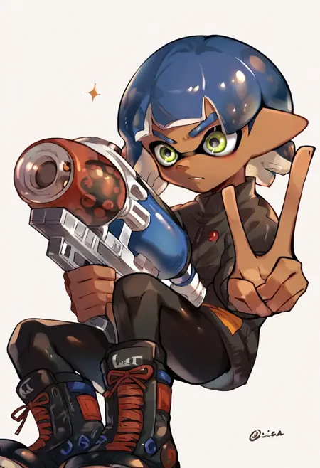 Commissioned by @Computer4_Undamaged5 who wanted to complete the set. Decided to go with the blue haired version but the set was rather small compared to the Orange Haired version so I might add a bonus set that includes all variants of the Inkling Boy.