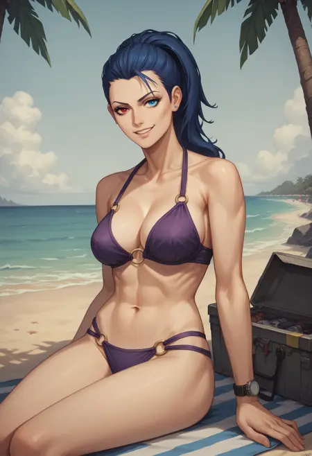 vi, 長い髪, 青髪, 高いポニーテール, 異色瞳, 赤い目, 青い目